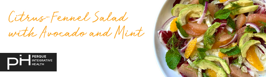 This colorful salad highlights the fresh flavors of winter citrus and fits neatly into holiday menus. Oranges and pink grapefruit supply vitamin C. Fennel and radicchio support healthy digestion while adding structure and crunch. Avocado contributes monounsaturated fats that help maintain balanced cholesterol levels. Apple cider vinegar and fresh mint provide a clean, refreshing finish. Light yet satisfying, this seasonal dish makes a wholesome addition to any holiday meal.