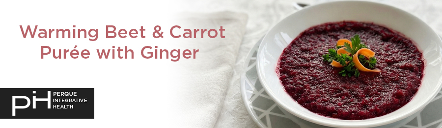 This warming purée combines earthy beets and naturally sweet carrots with a touch of fresh ginger. Gentle on the stomach and rich in nutrients, it supports circulation and vascular health. Perfect as a nourishing, cozy meal, it highlights seasonal vegetables in a simple, comforting way.